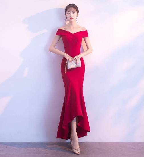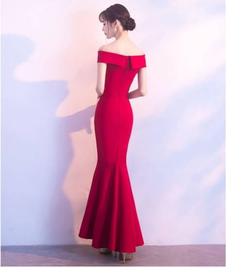 アシンメトリーのロング丈が華やかなフィッシュテールドレスです。