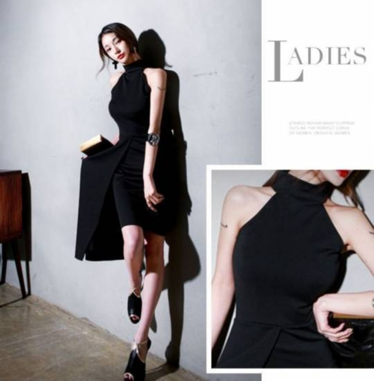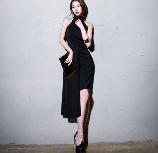 ブラックカラーを生かしたドレスは、ほど良くフィットしたキレイなシルエットも、女性らしさが引き立つポイント。