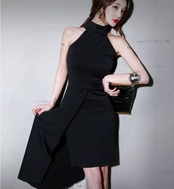 パーティードレス ワンピース ノースリーブ ロングスカート ミドルウエスト ホルターネック 二次会 お呼ばれ 結婚式 パーティ