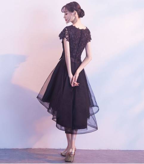 パーティードレス ワンピース レース 刺繍 半袖 ショートスカート ミドルウエスト Uネック シースルー 二次会 お呼ばれ 結婚式 パーティ
