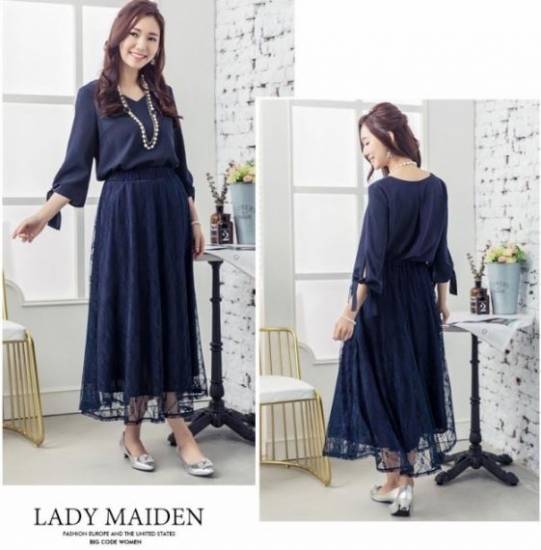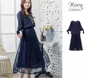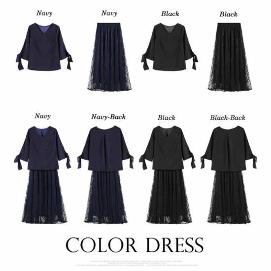 パーティードレス セットアップ ブラウス レース トップス スカートジャガード 七分袖 ロング丈 ハイウエスト Vネック シースルー 二次会 お呼ばれ 結婚式 パーティ