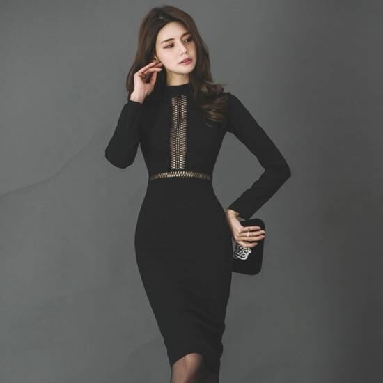 膝丈 さりげないシースルーが上品なセクシーを演出
