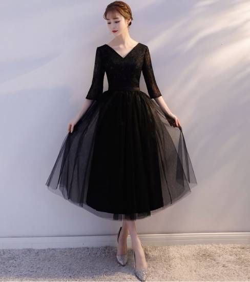 【大きいサイズ】パーティードレス ワンピース レース 刺繍 七分袖 ミディ丈 ミドルウエスト Vネック シースルー 二次会 お呼ばれ 結婚式 パーティ K426
