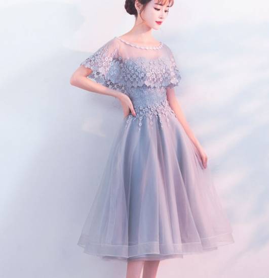 パーティードレス ワンピース レース 刺繍 半袖 ミディ丈 ハイウエスト ラウンドネック シースルー 二次会 お呼ばれ 結婚式 パーティ