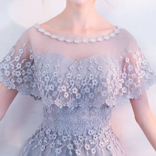 ウエスト回りのみに施したフラワーモチーフのレースが自然とウエストを細く見せてくれるデザイン。