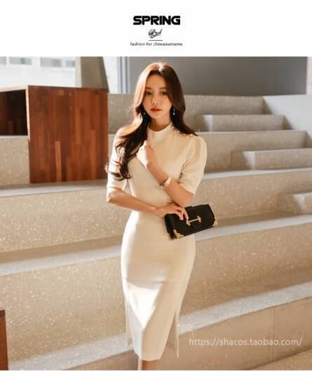 オルチャン風 ウエストマークスリットタイトワンピース