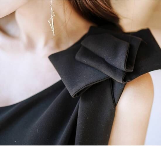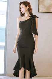 シンプル ショルダーリボン2カラーマーメイドワンピース