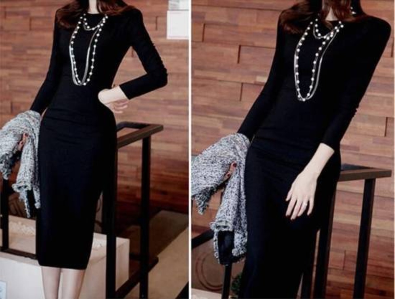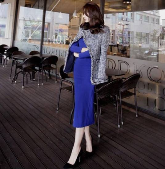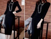 深めのスリットで大人っぽさを強調したシンプルなロング丈タイトワンピース。