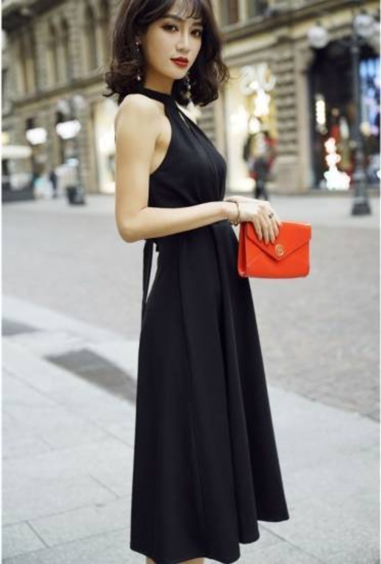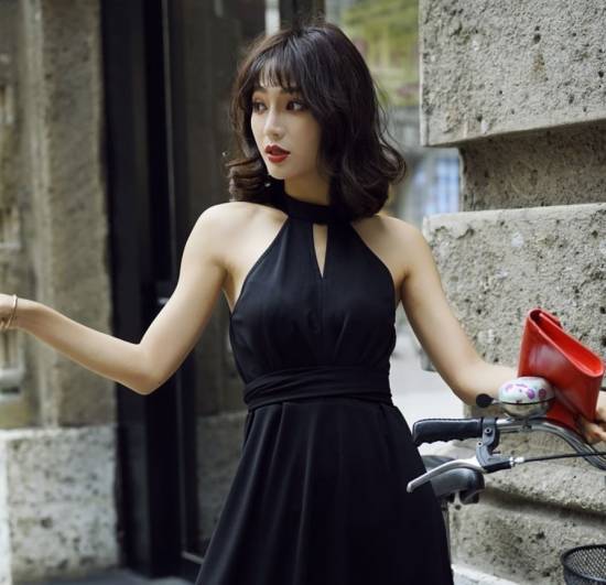 ホルターネックがほんのりセクシーなノースリーブワンピース。