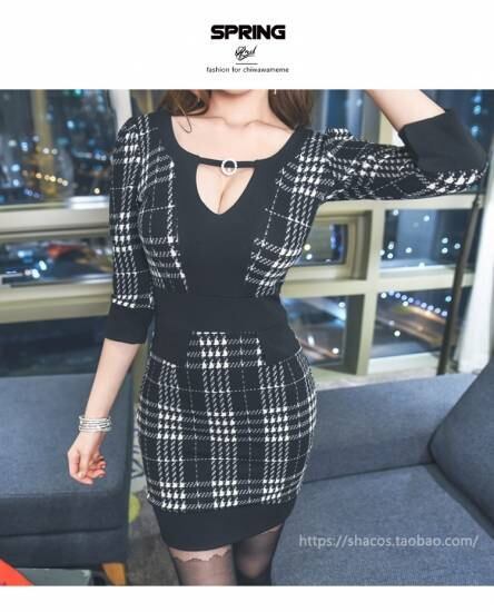 バストがきれいに見える千鳥柄 セクシーワンピース