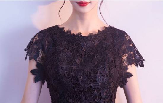 パーティードレス ワンピース レース 刺繍 半袖 ショートスカート ミドルウエスト Uネック シースルー 二次会 お呼ばれ 結婚式 パーティ