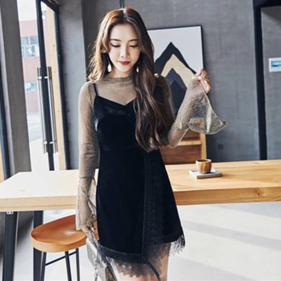 オルチャン風 シアーキャミワンピース
