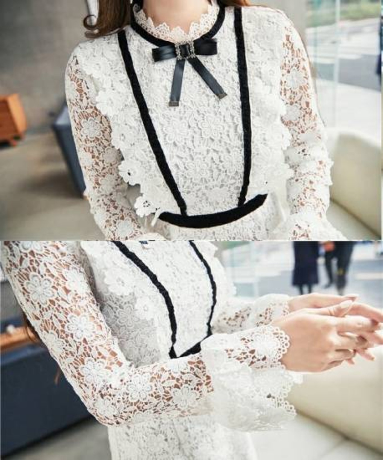 オルチャン風 総レースウエストマークワンピース