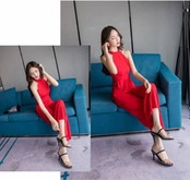 ホルターネック&ウエストリボンのジャンプスーツです。