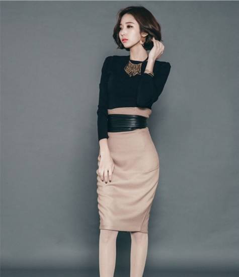 タイトなハイウエストスカートの脚長効果をお試しください。