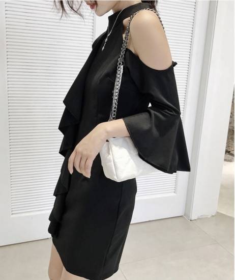 上品でフェアリーな印象の清楚で大人可愛いフレア袖ドレス