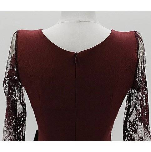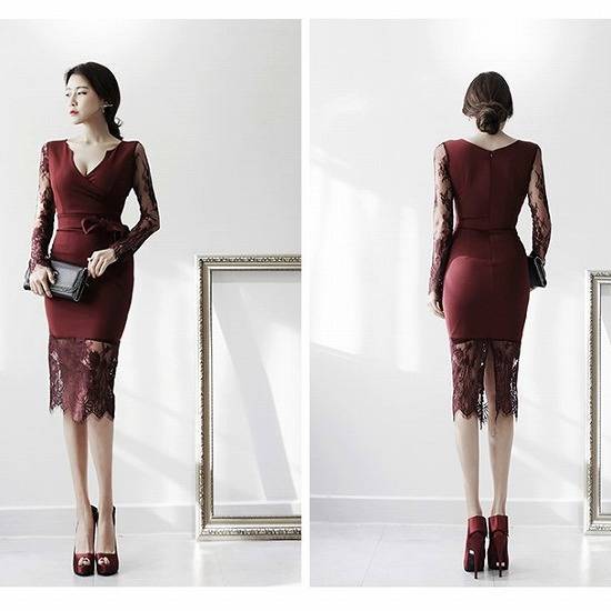 袖とスカートの裾に大胆にあしらった妖艶なレースが艶感を演出。