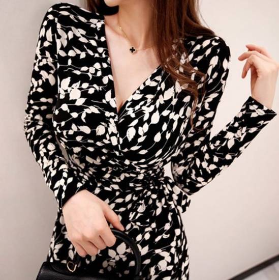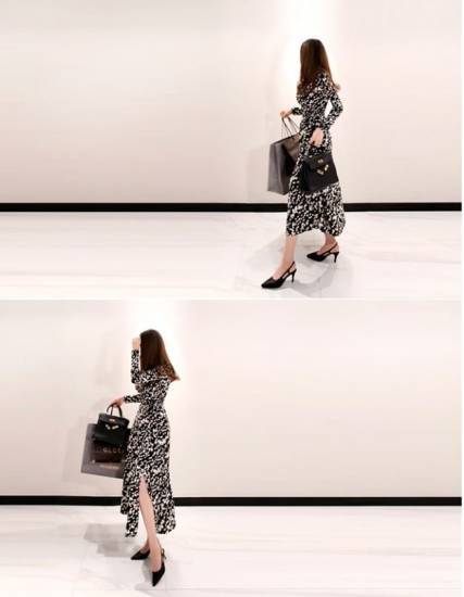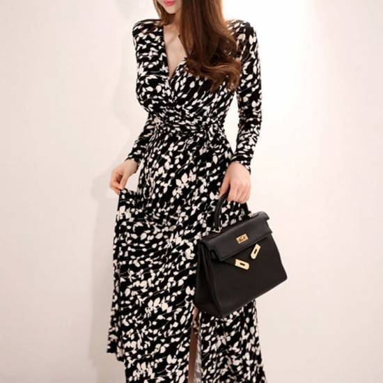 ブラックカラーを生かしたドレスは、ほど良くフィットしたキレイなシルエットも、女性らしさが引き立つポイント。