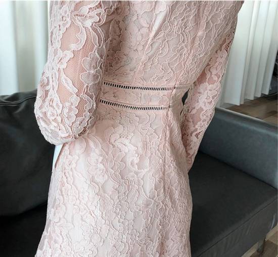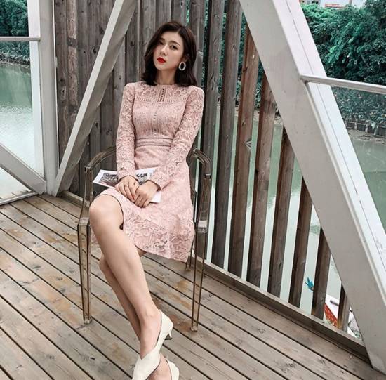 総柄レースがキュートな清楚で美しいピンクカラーのショート丈ワンピース。