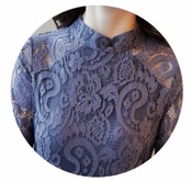 胸元と袖部分は シースルー になっており、重た過ぎない洗練されたデザインです。