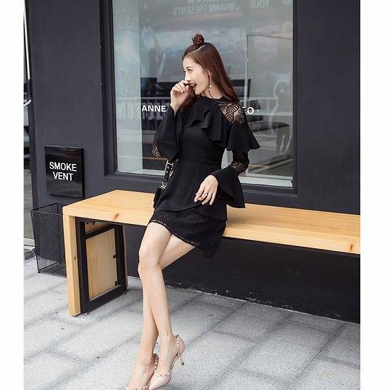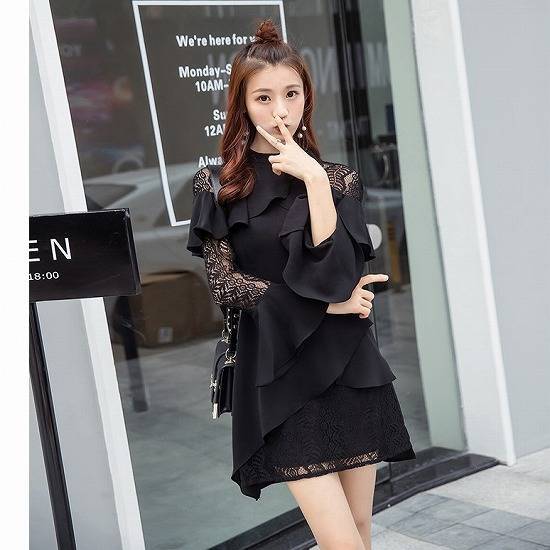 胸元の大胆フリルに肩・腕・スカート裾のレースが大人可愛い♪