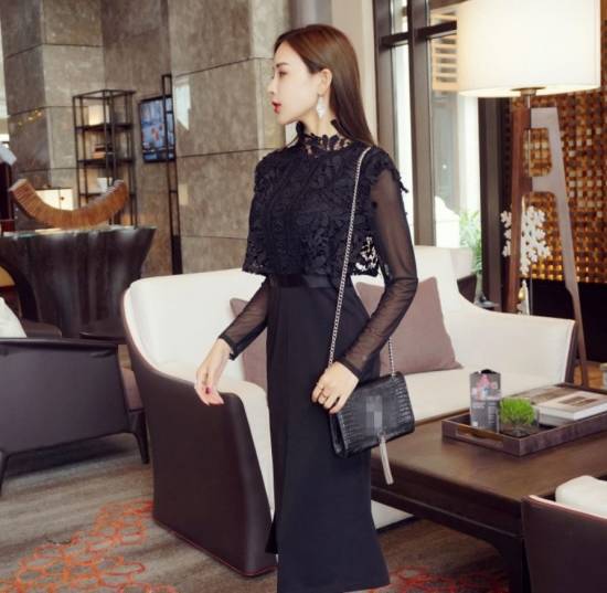 トップスのレースが優雅なデザインは女性の美しさを十分に表現するワンピースです。
