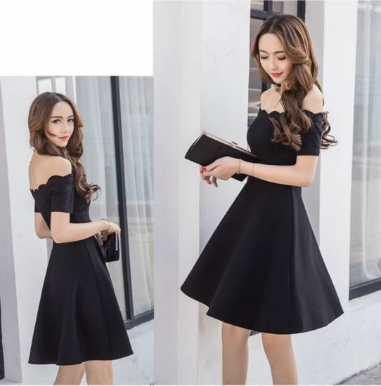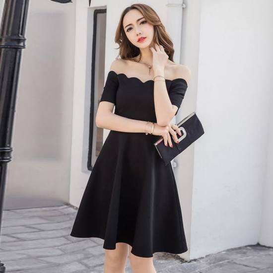 シンプルなフォルムにモードでオートクチュールな雰囲気をプラスしたオフショルダーが個性的なワンピース。。