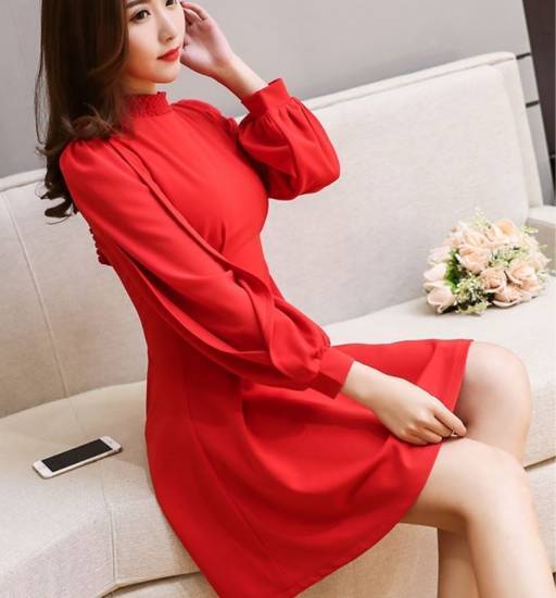 きゅっと締まったウエストから広がる緩やかなAラインワンピースドレス♪