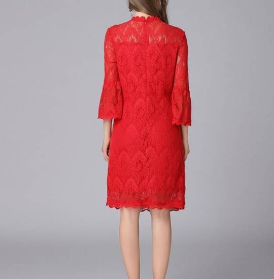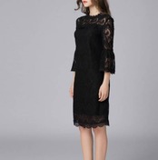 エレガントな花柄がポイントのレース セミタイトワンピース!