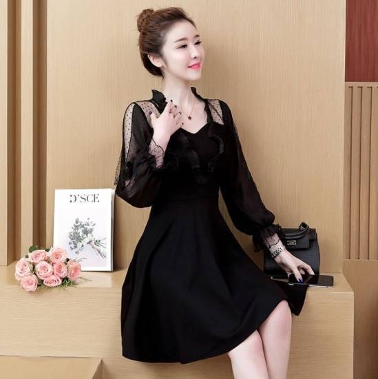シンプルなブラックにシースルーの袖がエレガントなワンピース。