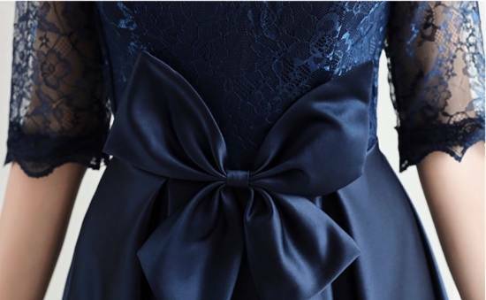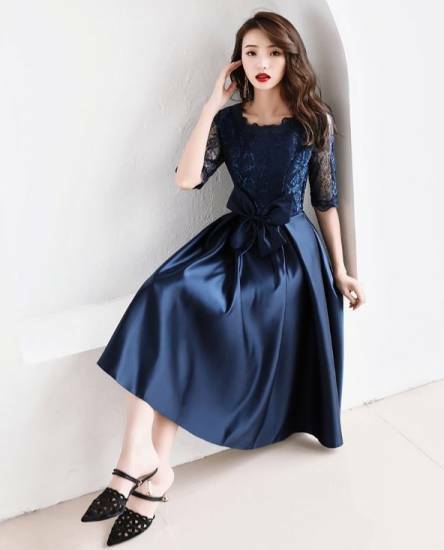 パーティードレスで人気のレースとサテンのバランスが大人可愛いデザイン。