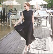 ふんわりシフォンのドレープが美しいロング丈ワンピース。