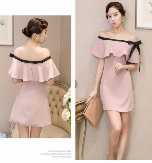 5)お客様の個人情報は発送以外に使用することは一切ございません。ご安心して、ご利用ください。袖のフリルとリボンが可愛いオフショルダーワンピースドレス