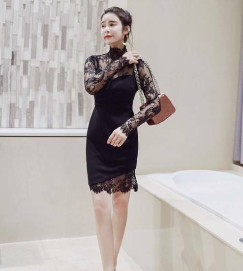 5)お客様の個人情報は発送以外に使用することは一切ございません。ご安心して、ご利用ください。レースデザインがエレガントなAラインワンピース!