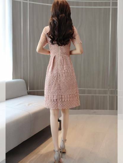 5)お客様の個人情報は発送以外に使用することは一切ございません。ご安心して、ご利用ください。シンプルなひざ丈のフレア半袖ワンピース。