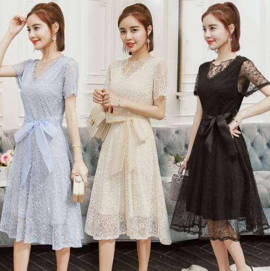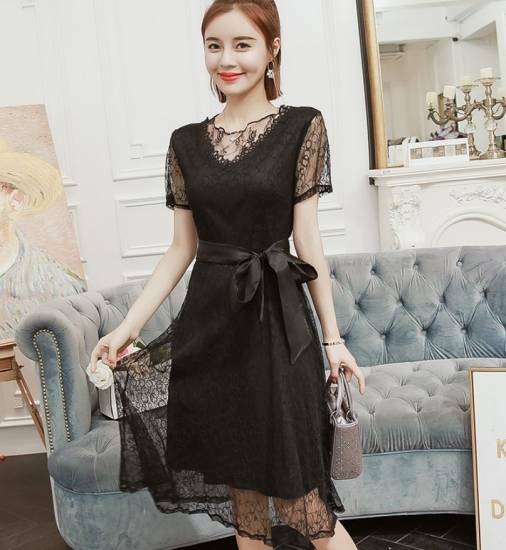 総レースが上品な印象の半袖カクテルドレス!