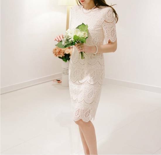 パーティードレス 結婚式 二次会 ワンピース お呼ばれ レディース レース 半袖 大きいサイズ ミモレタイト 白 ホワイト 20代 30代 40代