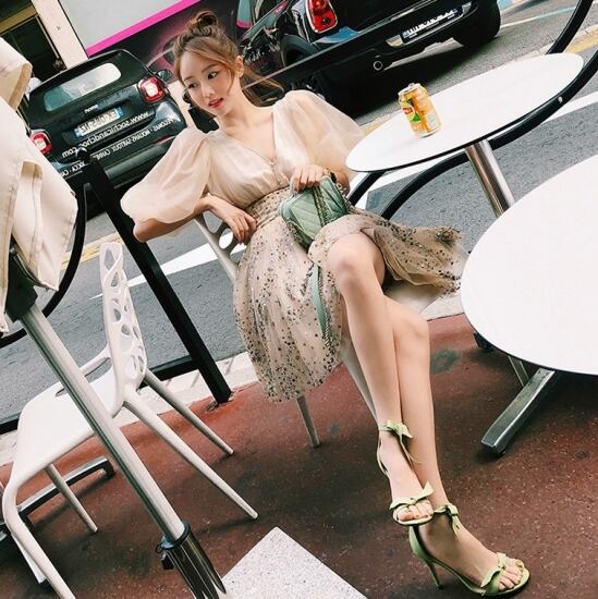 ボリューミーで透け感があるシフォン素材がとってもキュートなワンピース♪