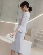二次会 ワンピース パーティードレス 結婚式 ドレス お呼ばれ シースルー レース 七分袖 演奏会 発表会 二次会ワンピース パーティードレス 結婚式 ドレスお呼ばれ
