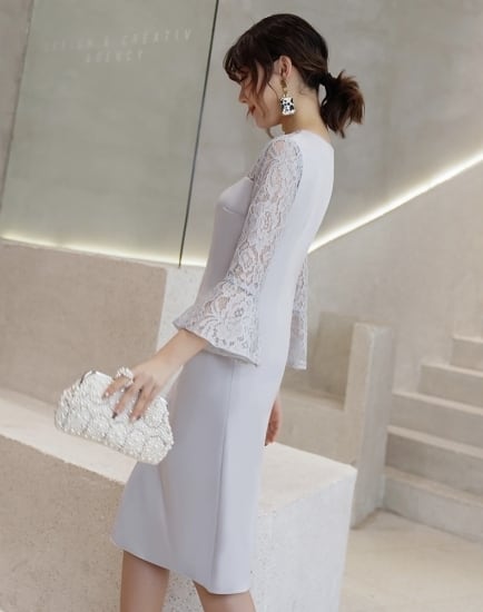 デコルテから袖にかけて贅沢にあしらわれたレースが大人っぽい印象のワンピース。