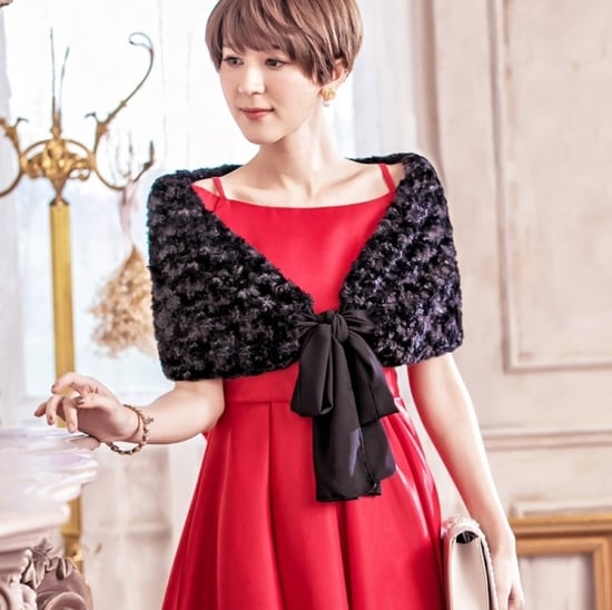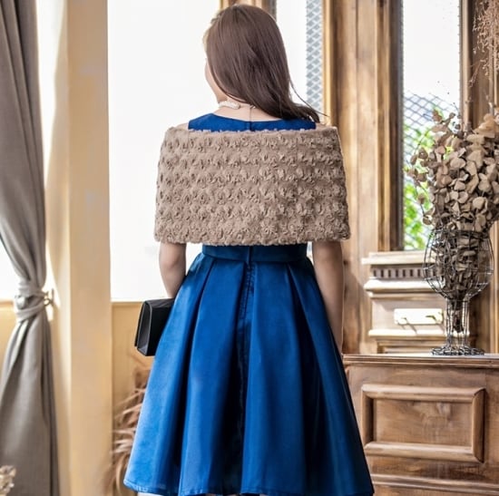 ふわもこが魅力的、フェイクファー生地がお洒落なパーティーショール。