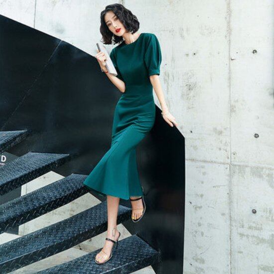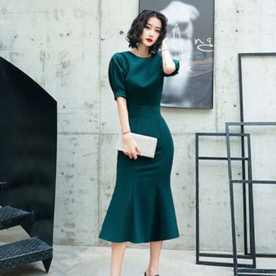 パーティードレス 結婚式 二次会 大きいサイズ ドレス ミモレ丈 パーティドレス ワンピースドレス 20代 30代 お呼ばれドレス フォーマルワンピース マーメイドドレス フィッシュテールドレス