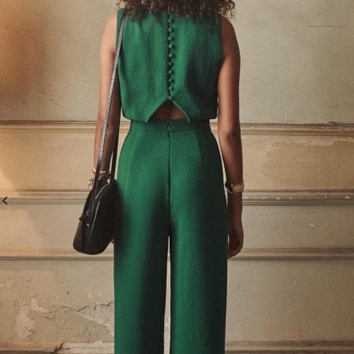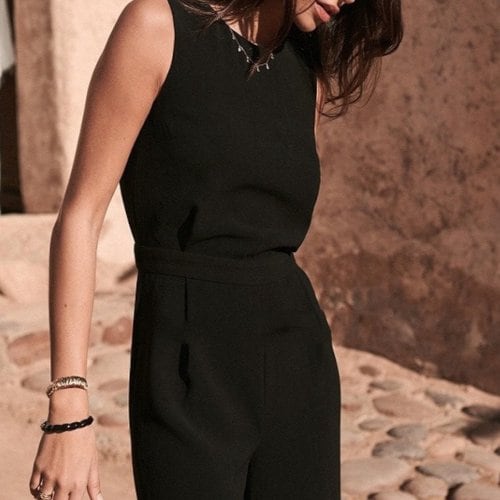 バックコンシャスが目を引くオールインワンのパンツドレス。
