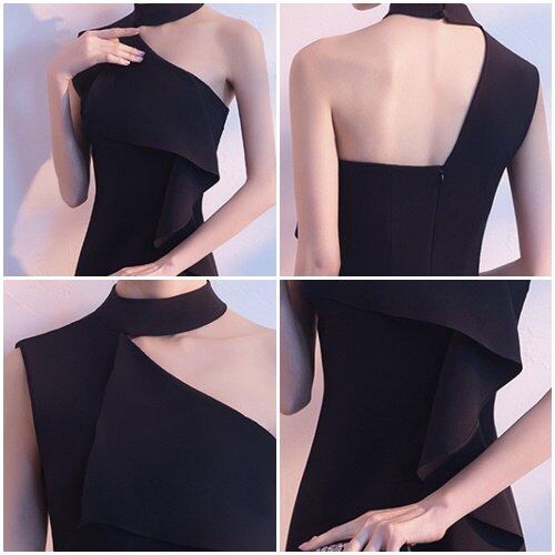演奏会ドレス 結婚式 二次会 パーティー 発表会 タイト フリル アシンメトリー ミモレ丈 黒 白 バックコンシャス ノースリーブ セクシー 演奏会ドレス 結婚式 二次会 パーティー 発表会 タイト