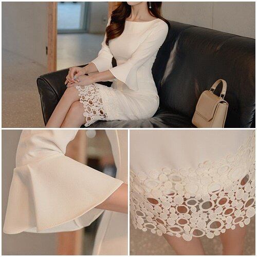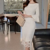 演奏会ドレス 結婚式 二次会 お呼ばれ パーティー 同窓会 ミドル丈 レース エレガント トランペットスリーブ ボートネック 演奏会ドレス 結婚式 二次会 お呼ばれ パーティー 同窓会 ミドル丈