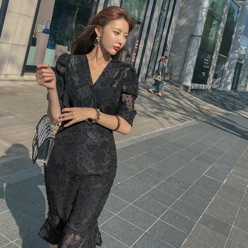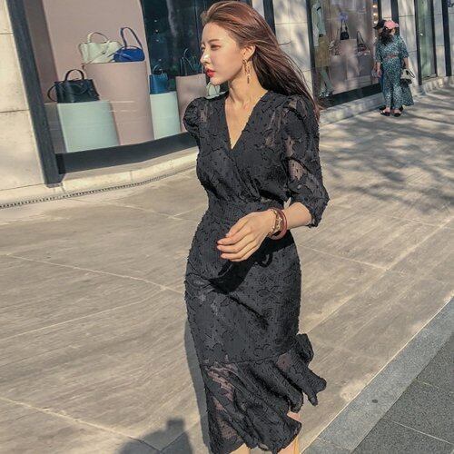 パーティードレス 総レース カシュクール マーメイド 黒 五分袖 Vネック タイト 大きいサイズ お呼ばれ パーティー 発表会 同窓会 パーティードレス 総レース カシュクール マーメイド 黒 五分袖