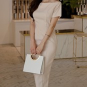 デコルテを綺麗に見せるネックラインで小顔効果も期待できます。