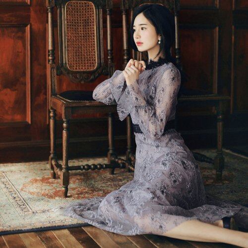 結婚式ドレス 二次会 同窓会 謝恩会 発表会 お呼ばれ パーティー ミモレ丈 花 フラワー 刺繍 シースルー 長袖 Aライン フレアワンピース 結婚式ドレス 二次会 同窓会 謝恩会 発表会 お呼ばれ