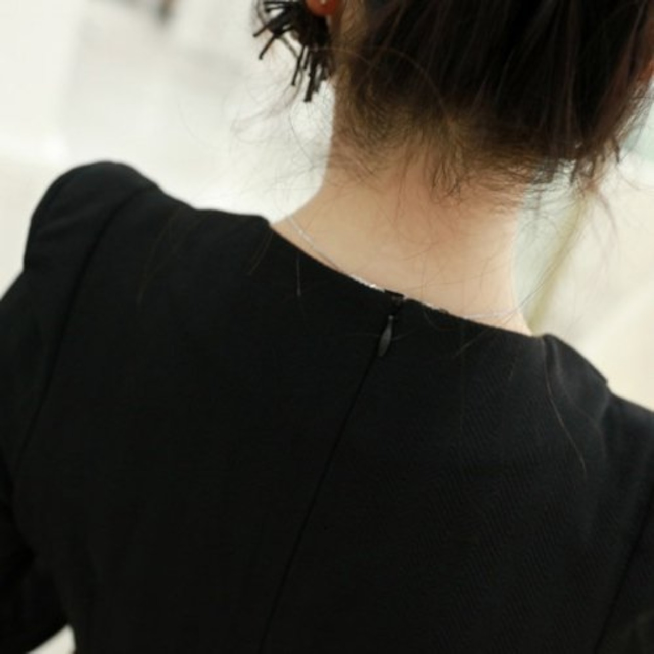 アシンメトリーのネックラインがおしゃれなデザイン。
