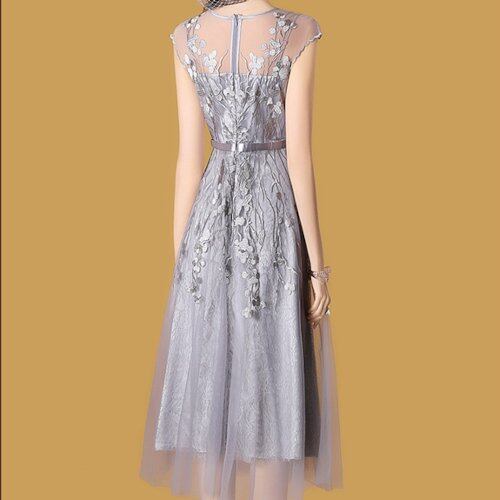 パーティードレス 結婚式 二次会 お呼ばれ 演奏会 発表会 パーティー ミモレ丈 レース 刺繍 シースルー 大きいサイズ Aライン フレアワンピース エレガント フェミニン パーティードレス 結婚式